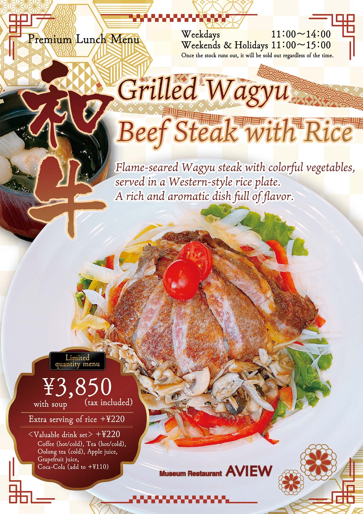 A luxurious bowl topped with carefully selected wagyu steak and fragrant seasonal mushrooms. Our special Japanese-style grated sauce enhances the savory flavor of the meat, making it an irresistible dish that goes perfectly with rice.