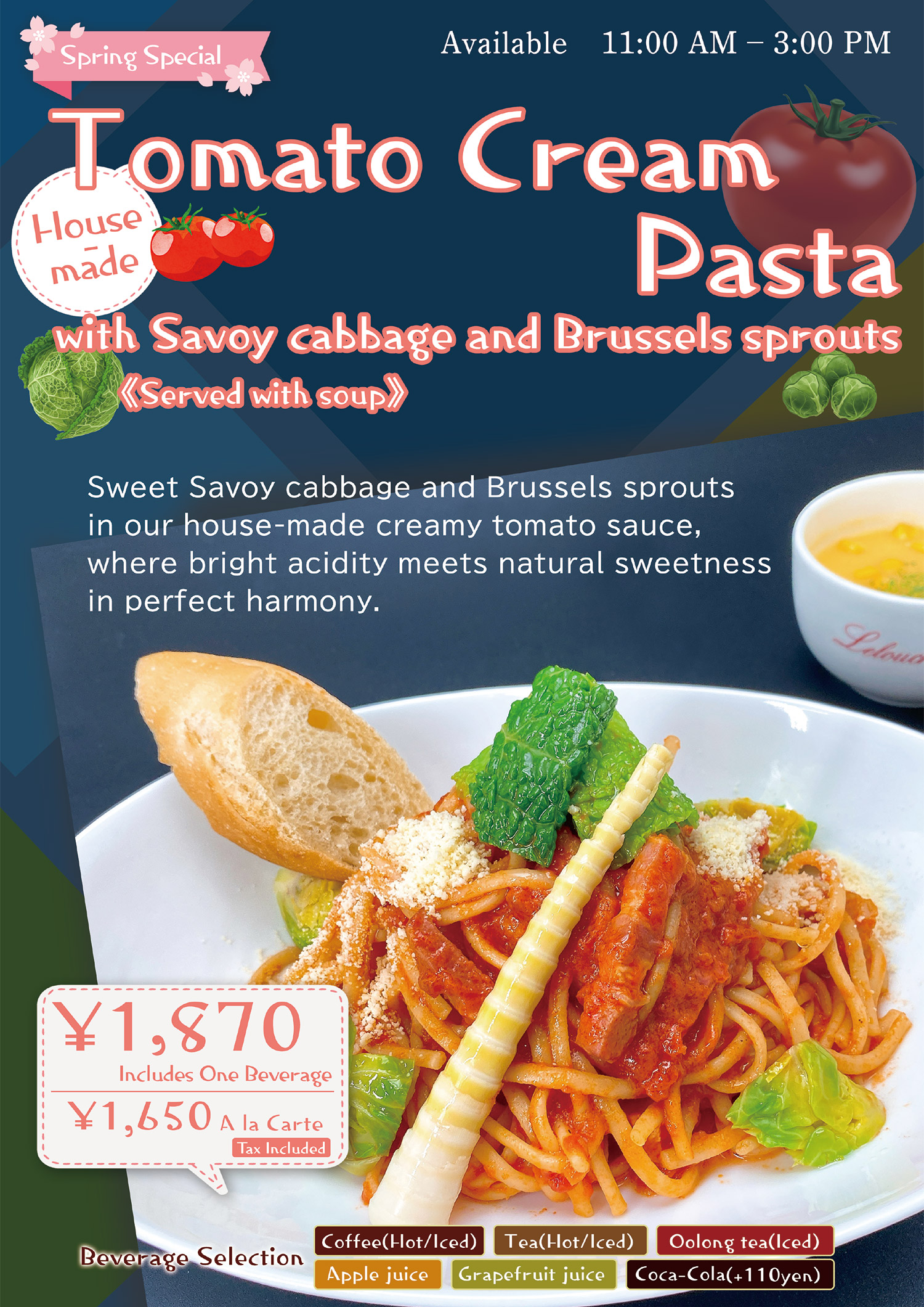 ◆ Tomato Cream Pasta (served with soup)