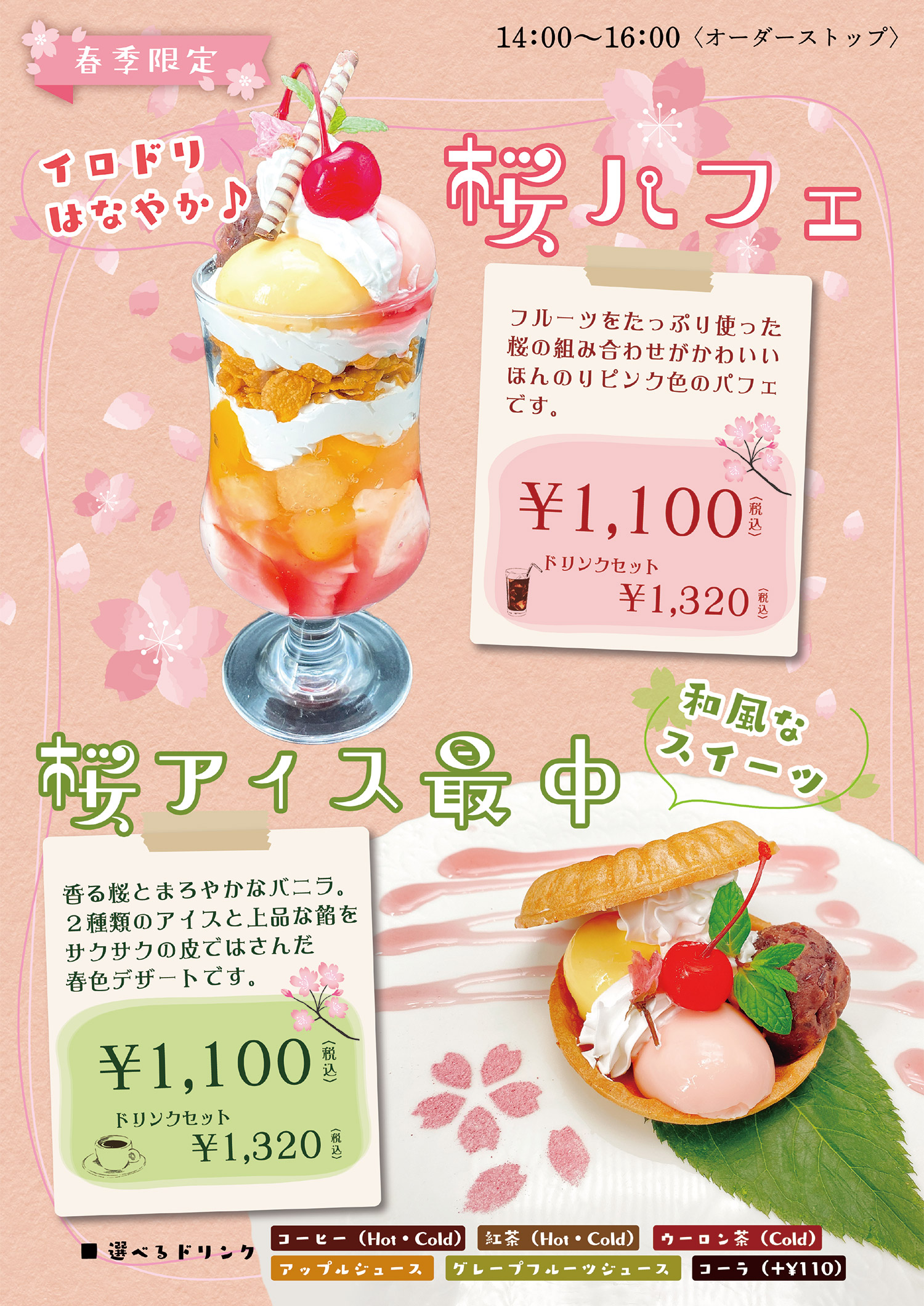 桜の風味とフルーツをたっぷり使った、見た目も華やかな春色パフェ。