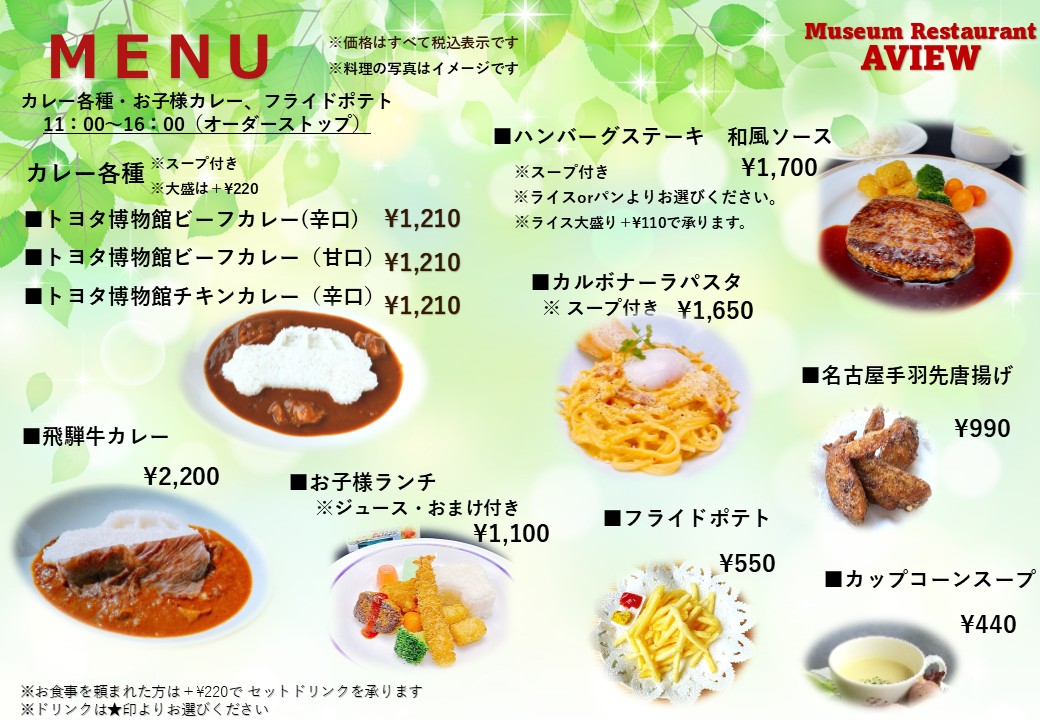 いつもトヨタ博物館レストラン AVIEWをご愛顧いただき、誠にありがとうございます。