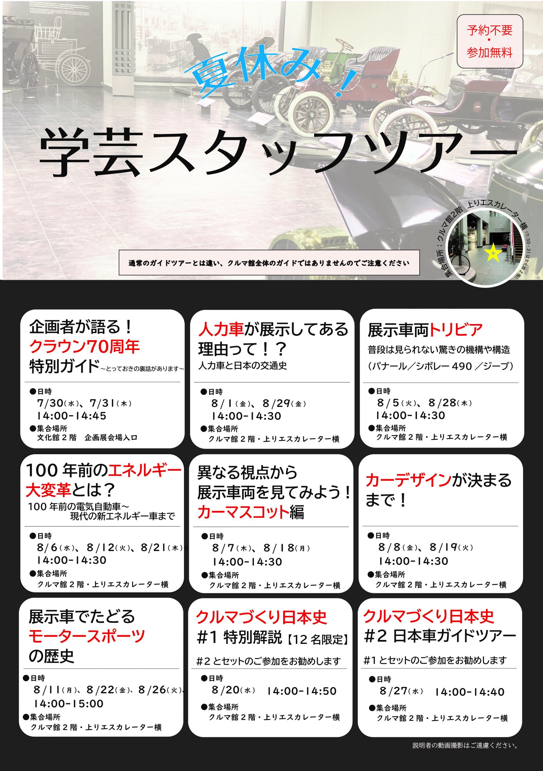 | 集合場所 | クルマ館2階(上りエスカレーター横) ※7/30(水)、7/31(木)は文化館2階企画展会場入口 館内マップ |