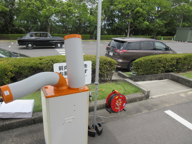 真夏の屋外イベントだった為、暑熱対策として、冷風機も用意しましたが、電源はエスティマハイブリッドとMIRAIから供給し、クルマの進化を対比できる瞬間でもありました。(※写真参照)
